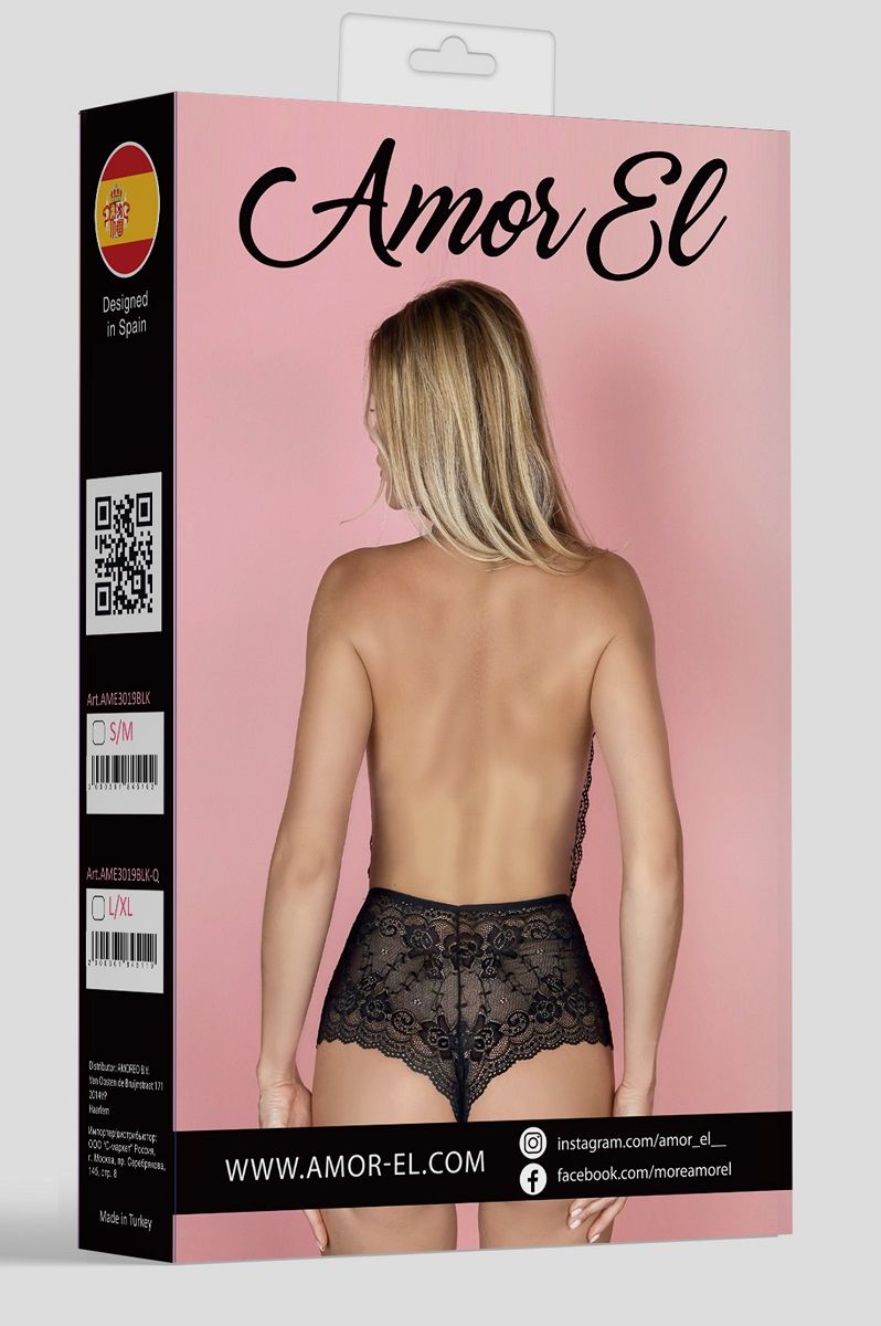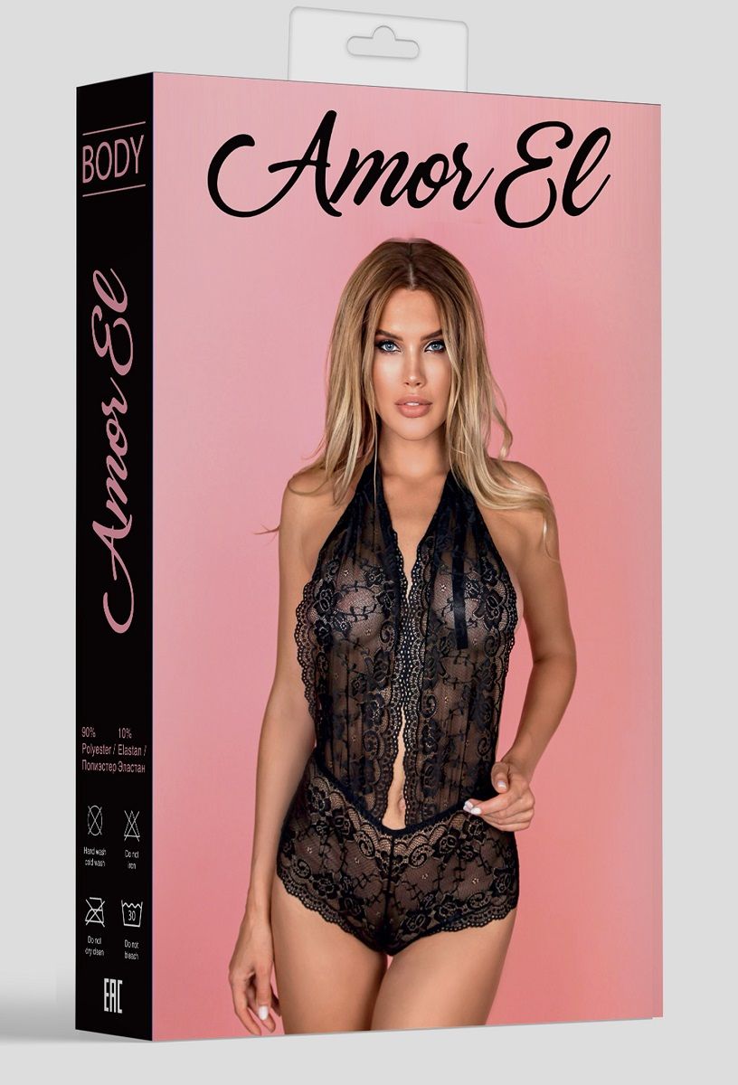 Кружевной боди с фиксацией на шее и голой спинкой.