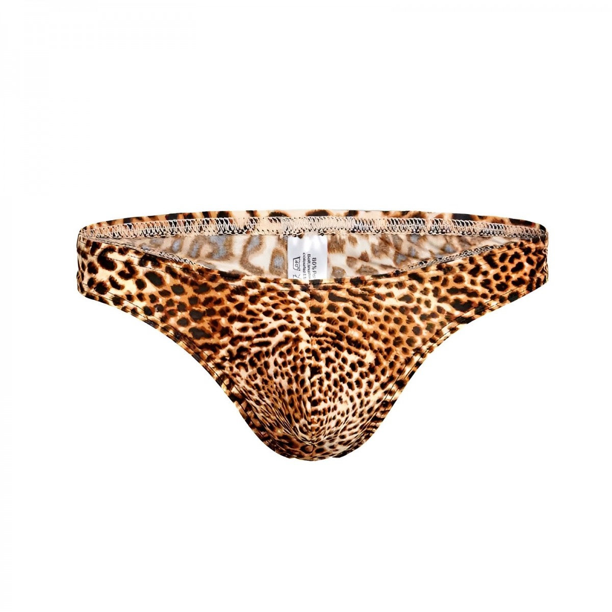 Леопардовые трусы-тонги. Шов спереди и специальный крой для того, чтобы не прижимать пенис плотно к телу.