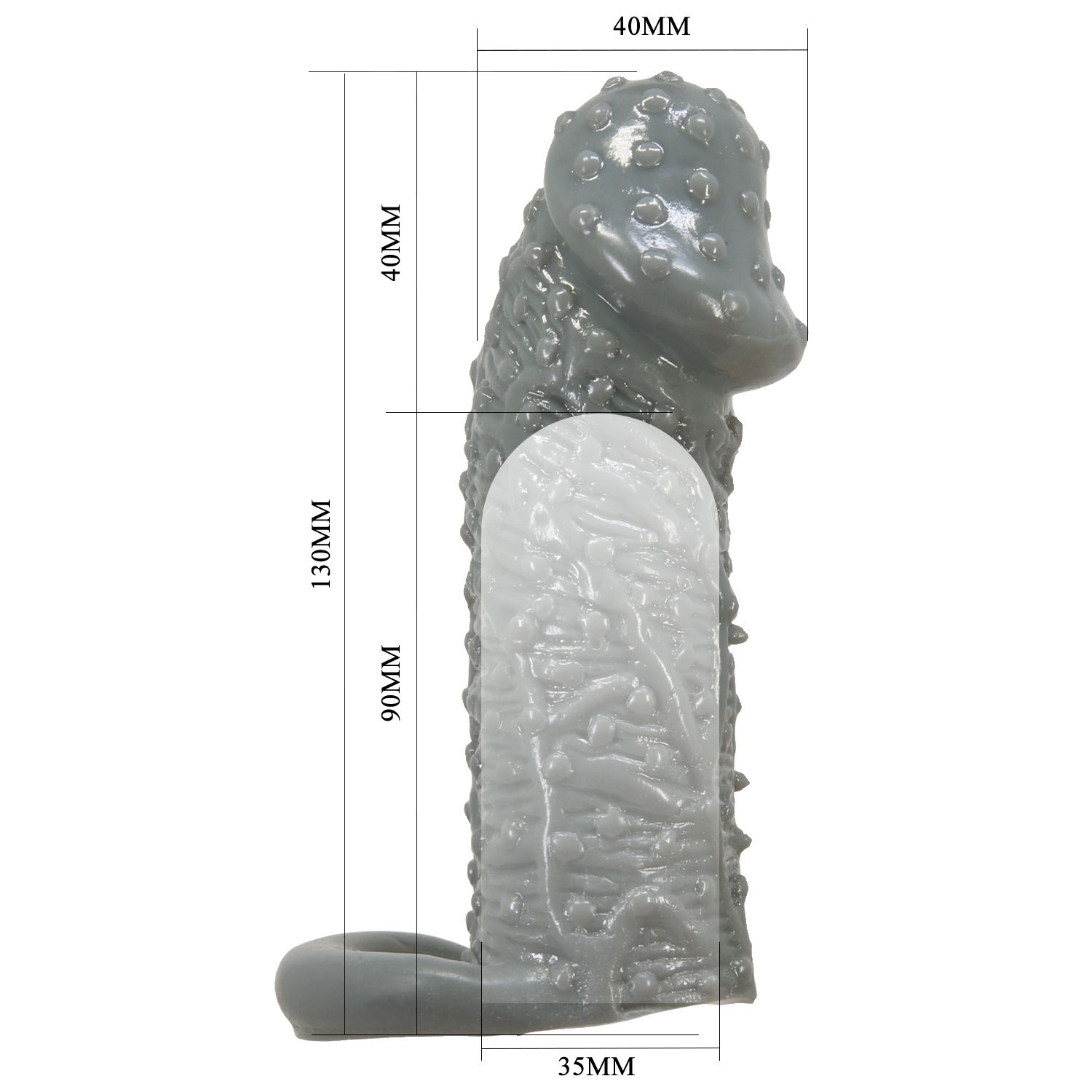 Эта эластичная насадка улучшает толщину и продолжительность полового акта. С ремешком, обвивающим яички, вы сможете продлить эякуляцию, а текстура с точечными вкраплениями обеспечит более яркие ощущения для обоих партнеров. Длина полости - 9 см, диаметр - 3,5 см.