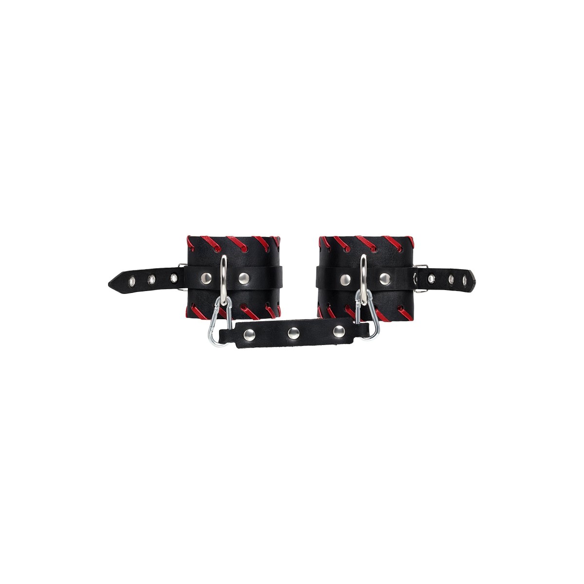 Готовы играть по-взрослому? Не бойтесь своих желаний! Основатели бренда уверены: лучший способ избавиться от искушения - поддаться ему! Добавьте пикантную деталь в ролевую игру и воплотите самую смелую сексуальную фантазию в реальность! Двухслойные кожаные оковы с окантовкой красного цвета, могут стать стильным аксессуаром на «свободных» руках, но могут послужить вашим целям и фантазиям по своему прямому назначению. Наличие двух карабинов и колец позволяет использовать изделие как раздельно – аксессуар-манжеты, так и как наручники для фиксации. К широким металлическим кольцам также можно присоединить и другие аксессуары при помощи карабинов. Благодаря универсальному размеру наручники могут использоваться и мужчинами, и женщинами. Размер легко регулируется с помощью металлических пряжек, органично вписывающихся в общий стиль. Длина манжет - 25 см, ширина манжет - 6,5 см. Длина сцепки - 20 см.