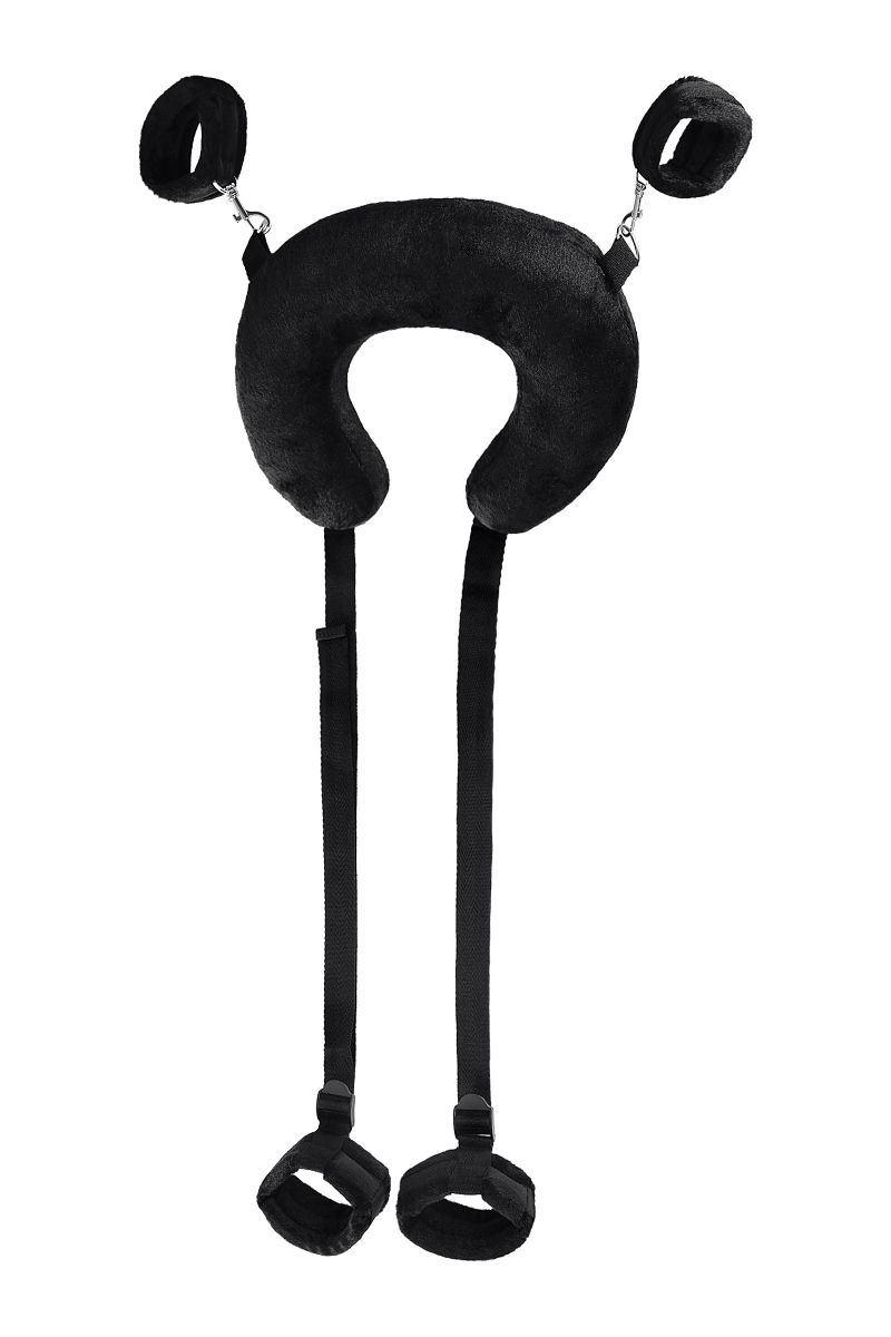 Чтобы экспериментировать и получать новые ощущения, необязательно быть опытным БДСМ-практиком. Главное, что должно волновать вас – это взаимное удовольствие. Для этого вам пригодится стропа для фиксации. Больше не нужно тратить силы на удерживание ног в нужной позиции. Мягкая подушка комфортно обхватывает шею, расслабляя ее и снимая нагрузку с позвоночника. Ремни регулируются и настраиваются по вашему желанию, чтобы удерживать бедра или лодыжки в нужном положении. Фиксирующая стропа оснащена также наручниками, позволяющим закрепить запястья у шеи, и лишить подчиняющегося партнера возможности двигать руками. Стропа для фиксации с подушкой для шеи поможет сосредоточиться на собственных ощущениях и подчиняться с комфортом. Общая длина - 127 см. Внешняя окружность подушки - 85 см, внутренняя - 37 см., ширина - 7,5 см. Длина наручников - 21 см., ширина - 5 см. Длина поножей - 26,5 см., ширина - 5 см.