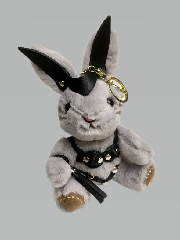 Госпожа зайчиха с плеточкой в стрингах и лифе украсит интерьер спальни, где зачастую бывает очень жарко. Плеть снимается и может служить отдельным аксессуаром, например, украсит ключ от машины. Игрушка оснащена карабином и кольцом, ее можно носить в качестве брелока на ключах или сумке. Костюмчик выполнен из натуральной кожи.