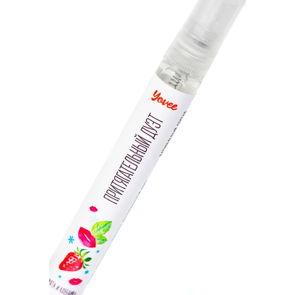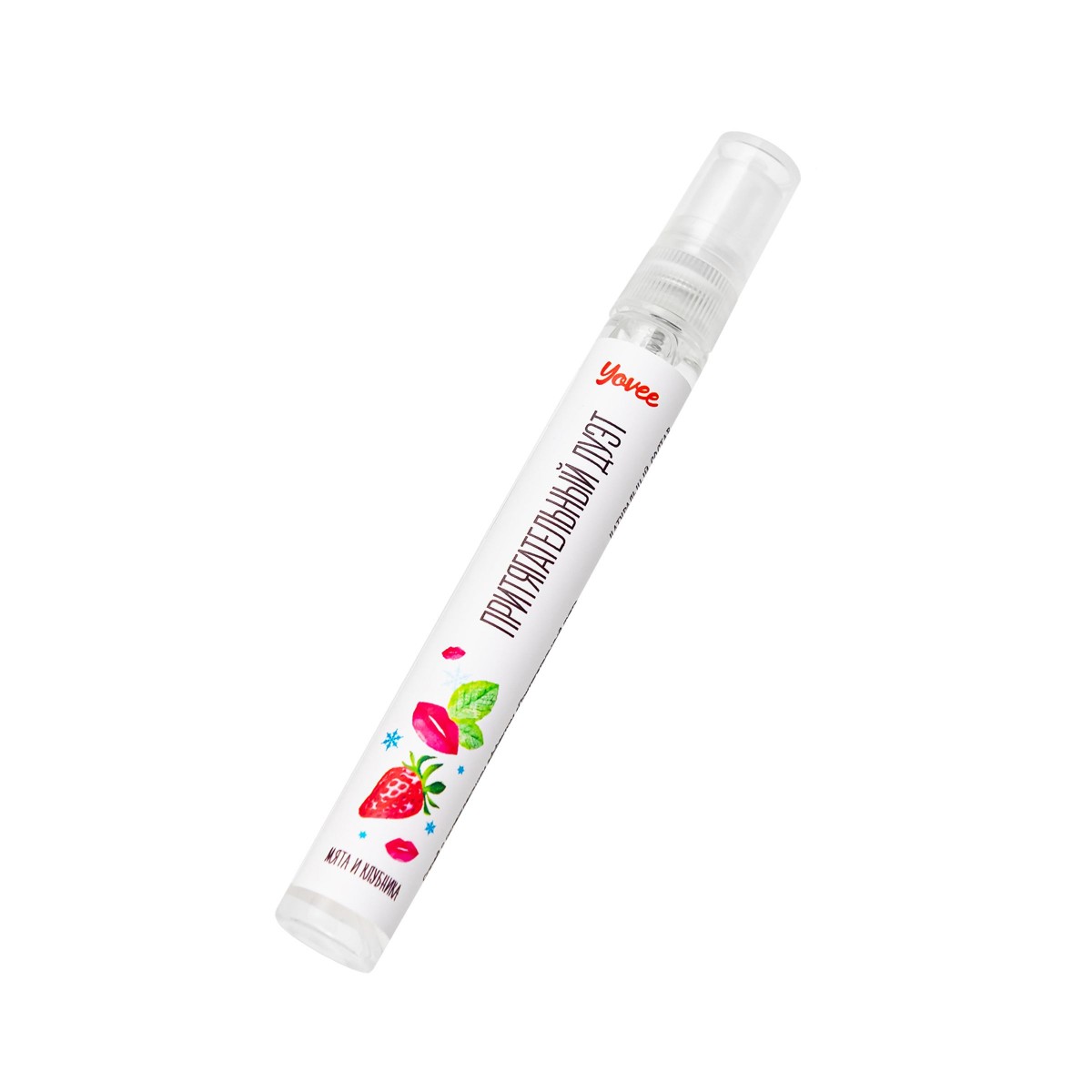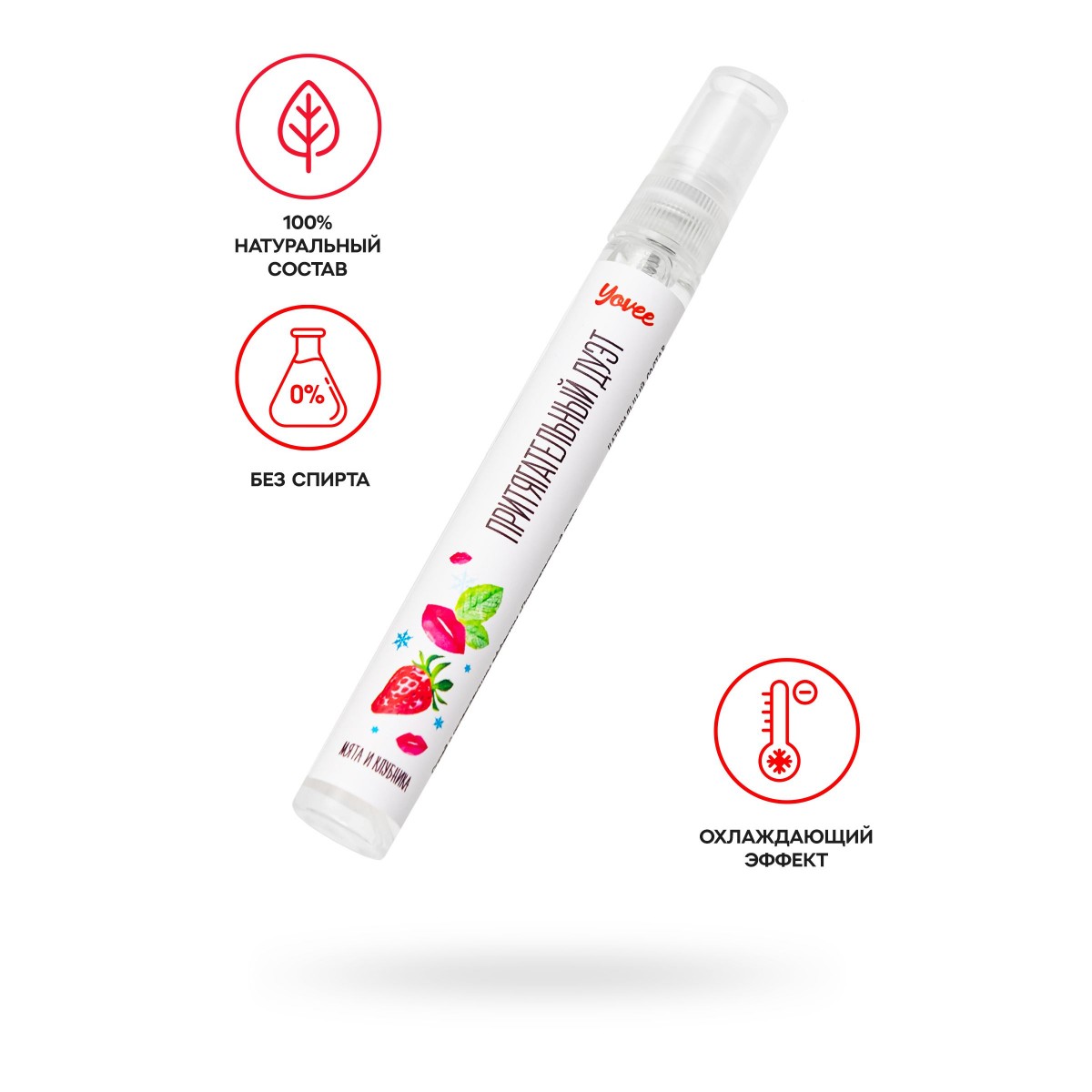 Обладая соблазнительным мятно-клубничным вкусом и приятным охлаждающим эффектом спрей Yovee «Притягательный дуэт» усиливает удовольствие от секса и делает интимную игру еще более пикантной. Применение спрея притупляет рвотный рефлекс и помогает освоить технику глубокой глотки. Также спрей можно использовать для усиления чувствительности нервных окончаний сосков. Под воздействием активных компонентов восприимчивость эрогенных зон станет выше, а ласки еще более приятными. Распылять средство нужно непосредственно перед оральным сексом. Длительность эффекта зависит от количества нанесенного спрея. Активные ингредиенты: Ментол - основной компонент эфирного масла, содержащегося в листьях мяты перечной. Избирательно раздражая холодовые рецепторы, вызывает ощущение холода, жжения, покалывания с последующим небольшим понижением чувствительности. Эфирное масло эвкалипта - афродизиак мягкого действия. Повышает сексуальную энергию, вселяет уверенность, придает силы, восстанавливает утраченные силы.