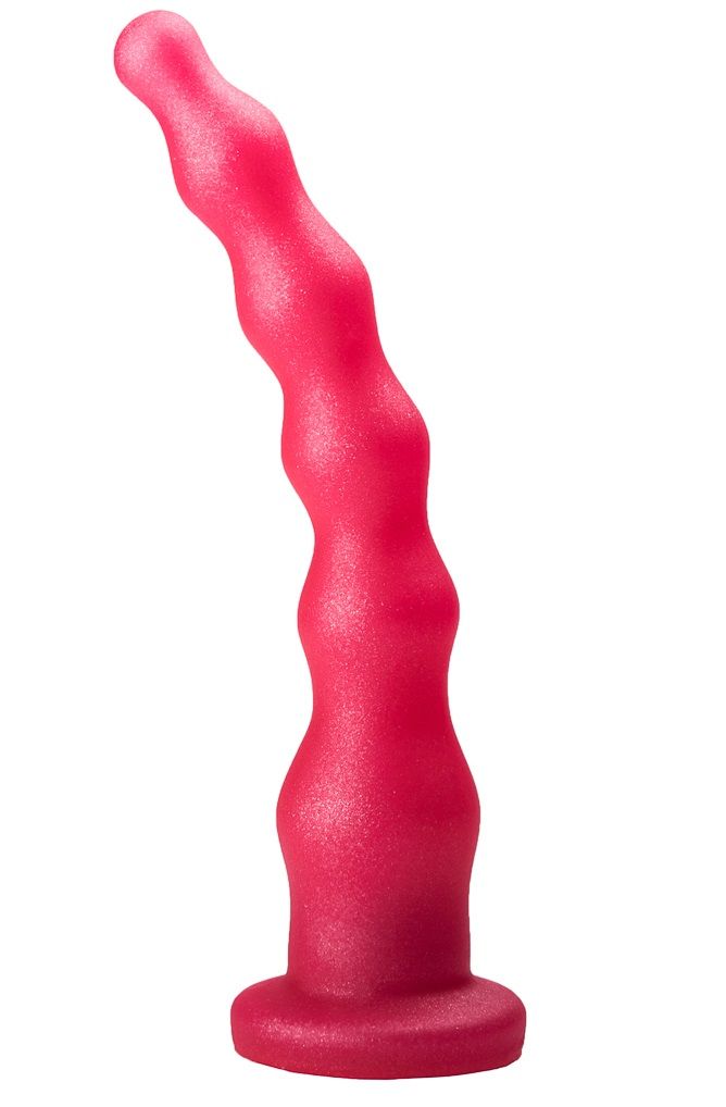 Розовый удлинённый анальный стимулятор с шариками. Можно использовать с креплением в виде кольца или применять отдельно, без страпона.