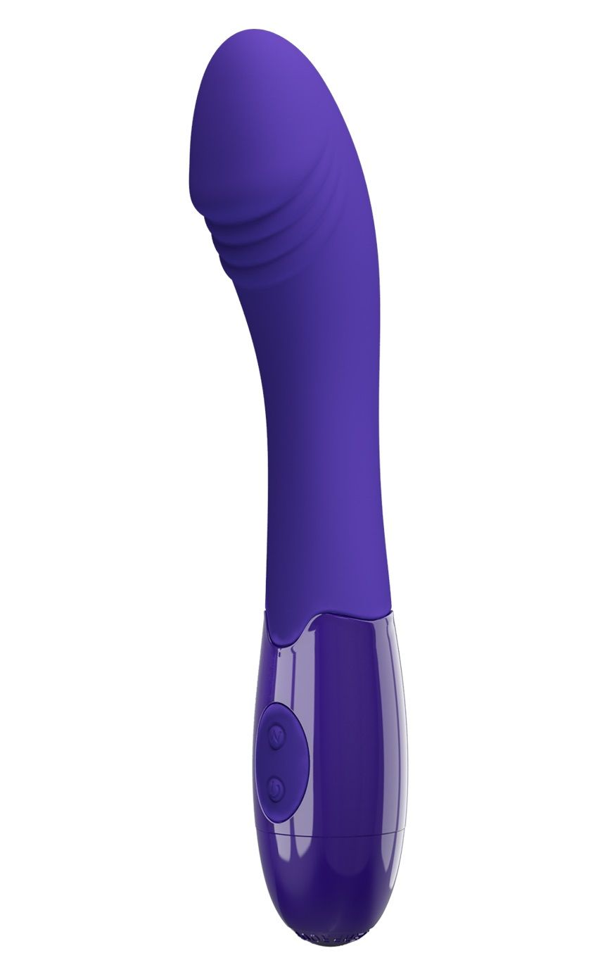 Фиолетовый вибростимулятор Elemetal. Благодаря изогнутой форме идеально подходит для G-стимуляции. 30 режимов вибрации.